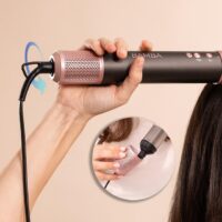 - El aire del moldeador tiende a seguir la superficie de los dos cilindros rizadores, enrollando el cabello alrededor del moldeador y creando rizos perfectos sin esfuerzo. Tecnología Coanda.