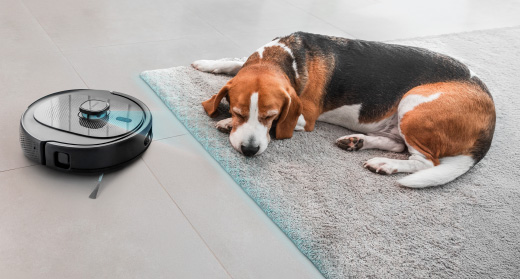 - Detección ultrasónica de alfombras. El robot detecta cuando hay una alfombra y sube la potencia de forma automática para limpiar con la máxima precisión y, si está en modo fregado, la esquiva para no mojar el tejido de la alfombra con sus mopas.