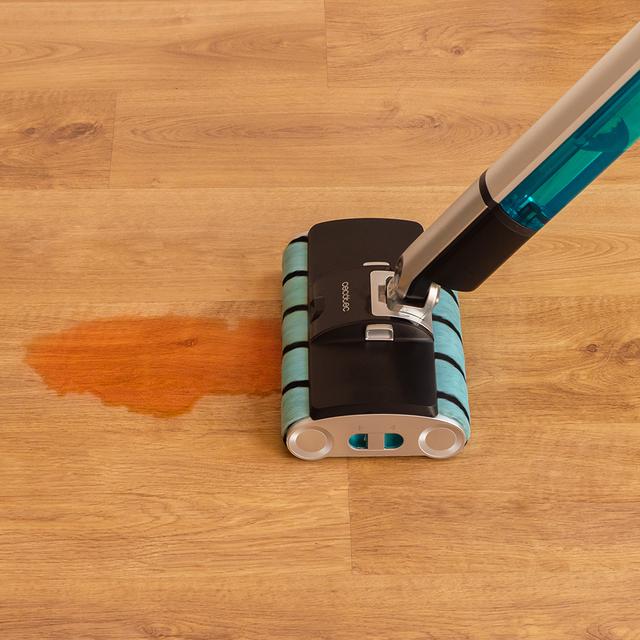 Consigue una limpieza profunda gracias a su doble rodillo súper absorbente, que desincrusta y recoge los líquidos con sus filamentos absorbentes para dejar tu suelo brillante.
