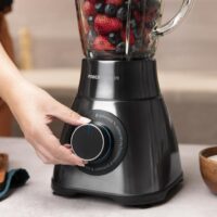 Esta licuadora de gran potencia se ha diseñado con acabados en acero inoxidable. Gracias a sus 1500 W de potencia y 23000 rpm de velocidad consigue un triturado óptimo con todo tipo de alimentos.