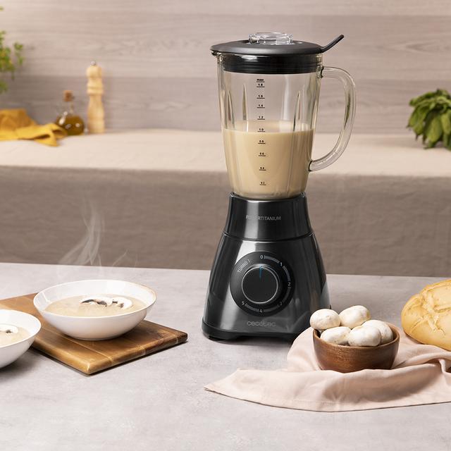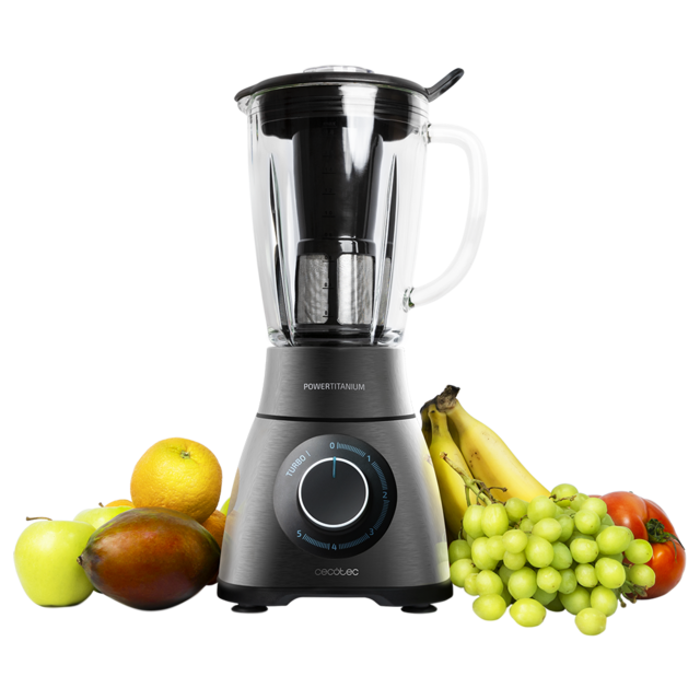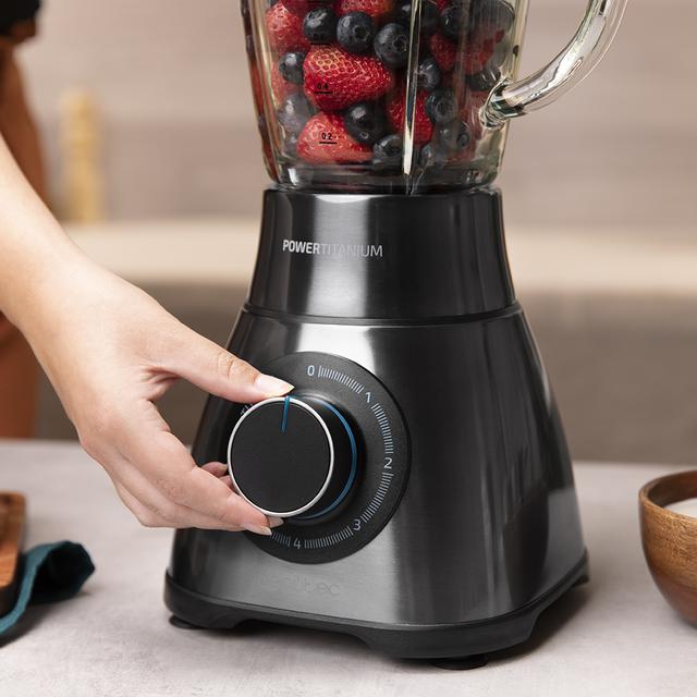 Batidora de vaso Power Black Titanium 2500MAX PerfectMix de Cecotec de 1500 W, con cuchilla de 8 hojas con recubrimiento de titanio negro y 1,8 L de capacidad. Incluye filtro para licuados.