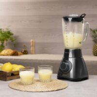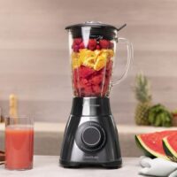- Batidora de vaso con acabados en acero inoxidable. Consigue un triturado óptimo gracias a sus 1500 W de potencia y 23000 rpm de velocidad.